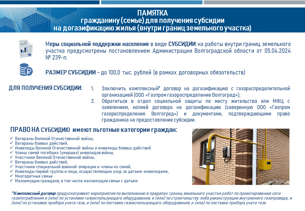 Памятка гражданину (семье) для получения субсидии на догазификацию жилья (внутри границ земельного участка)